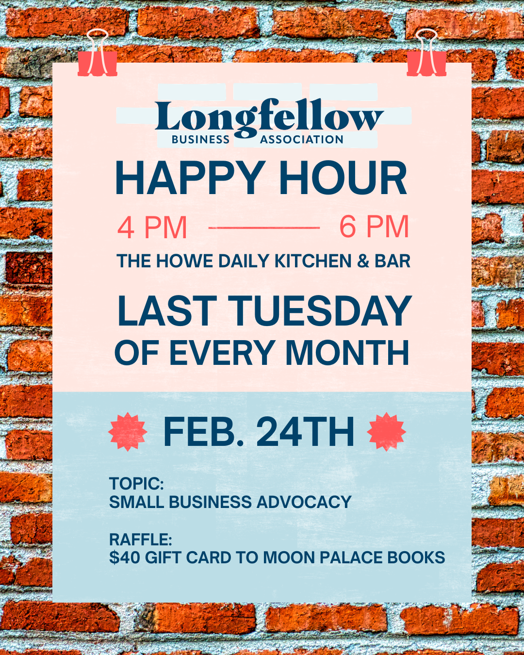 Join us for our February LBA Happy Hour on Tuesday, 2/24 from 4–6pm @ The Howe Daily Kitchen & Bar